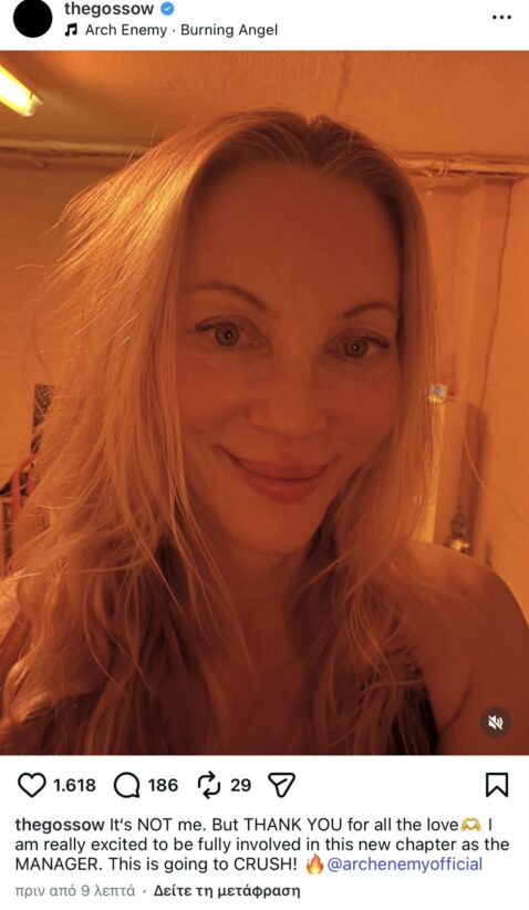 Μετά από όργιο φημών, στο οποίο μπήκαμε και εμείς το μεσημέρι της Δευτέρας, μάθαμε τελικά ότι η Angela Gossow, δεν θα είναι η νέα τραγουδίστρια των Arch Enemy. Το είπε η ίδια στον επίσημο λογαριασμό της στο instagram.